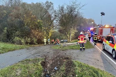 Pkw mit vier Insassen kommt von Fahrbahn ab, stürtzt Radweg hinab und überschlägt sich - 9. November 2025