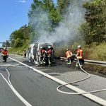 Auf der A9 in Fahrtrichtung Nürnberg wurde ein brennendes Fahrzeug gemeldet. Bereits auf der Anfahrt war eine deutliche Rauchsäule sichtbar.