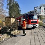 Parallel dazu ließ die Einsatzleitung die Drehleiter in der Stichstraße hinter dem Gebäude eine Anleiterbereitschaft herstellen.