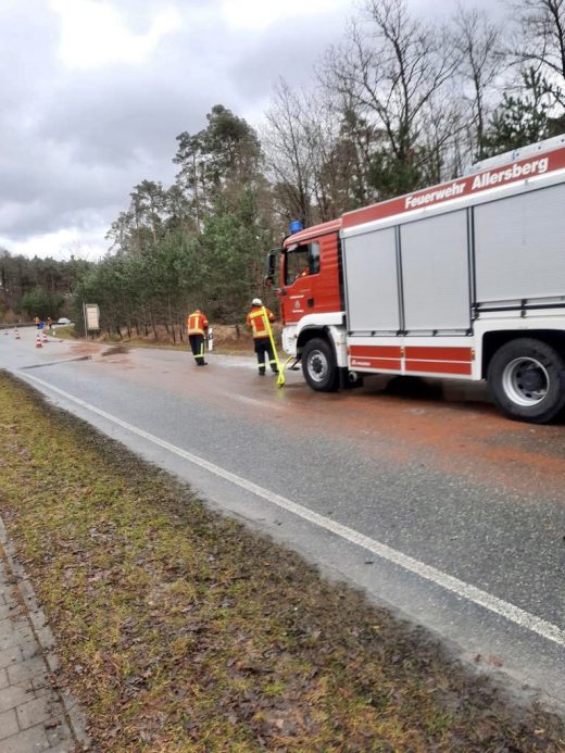 In der Hirschbergerstraße kippte ein Räumfahrzeug zur Seite und verlor hierbei Diesel und Hydraulikflüssigkeit. Die Betriebsstoffe wurden abgebunden und das angeforderte Bergeunternehmen beim wieder aufrichten unterstützt.