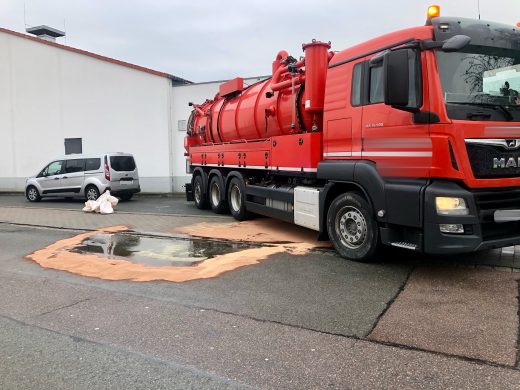 In der Neumarkter hat ein Saug- & Spülfahrzeug auf Grund eines technischen Defekts eine große Menge Hydrauliköl verloren. Der ausgelaufene Betriebsstoff wurde mit Hilfe von Bindemittel abgebunden und wieder aufgenommen.