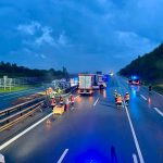 Auf der A9 in Fahrtrichtung Nürnberg geriet ein Sattelschlepper in die Mittelschutzplanke und beschädigte hierbei seinen Kraftstofftank. Der Dieselkraftstoff verteilte sich über die gesamte Fahrbahn der Autobahn Richtung Nürnberg und auf der linken und mittleren Fahrspur der Autobahn Richtung München. Da durch die Polizei bereits in beiden Richtungen eine Vollsperre eingerichtet war, konnte der ausgetretene Kraftstoff auf Fahrbahn Richtung München mit Bindemittel abgestreut und wieder aufgenommen werden. Auf Grund der erheblichen Menge an Kraftstoff auf der Fahrrichtung Nürnberg wurde hier mit Bindemittel eine Sperre eingerichtet, um Ausbreitung auf den Grünstreifen zu verhindern und über die Autobahnmeisterei eine Fachfirma mit der Reinigung der Fahrbahn beauftragt. Nachdem die Verkehrslenkenden Maßnahmen von der Autobahnmeisterei übernommen wurden, konnte die Einsatzstelle an die Polizei übergeben werden. Die Kräfte der Feuerwehr Allersberg und Altenfelden konnten den Einsatz beenden.