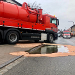 In der Neumarkter hat ein Saug- & Spülfahrzeug auf Grund eines technischen Defekts eine große Menge Hydrauliköl verloren. Der ausgelaufene Betriebsstoff wurde mit Hilfe von Bindemittel abgebunden und wieder aufgenommen.