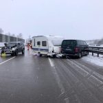 Aufgrund dessen und da beide Unfallfahrzeuge inklusive Wohnanhänger auf der linken und mittleren Spur zum Stehen kamen, konnte der Verkehr ausschließlich auf dem Pannenstreifen vorbei geführt werden.
