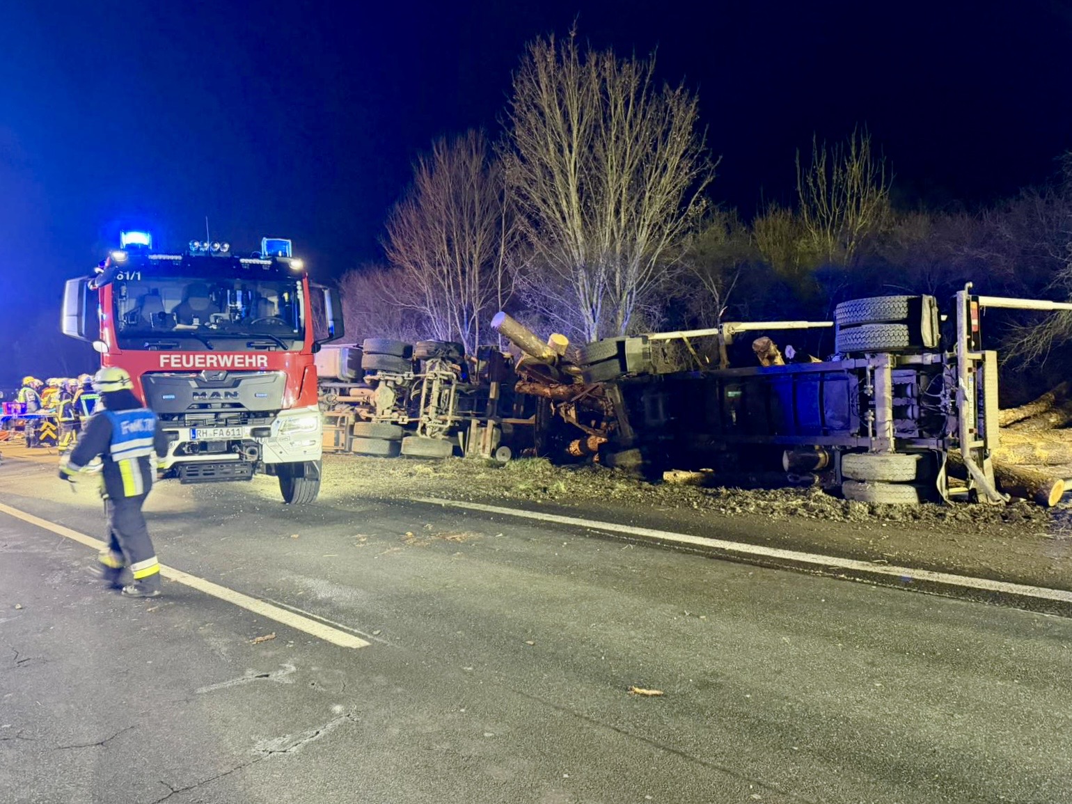 Auf der A9 in Fahrtrichtung München ereignete sich ein schwerer Verkehrsunfall mit einem beladenen Holztransporter.
