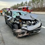Auf der A9 in Fahrtrichtung München fuhr ein Pkw auf einen Sattelschlepper auf, schleuderte zurück auf die Fahrbahn und kam zwischen der linken und mittleren Spur zum liegen. Hierbei verteilten sich über die gesamte Autobahn Trümmerteile und Betriebsstoffe auf etwa 200 Meter.