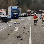Nach der ersten Rückmeldung von der Einsatzstelle war keine Person mehr eingeschlossen und es musste lediglich die Staatstraße von Betriebsstoffen und Trümmerteilen gereinigt, sowie der Brandschutz sichergestellt werden.