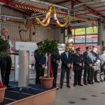 Dort angekommen folgten die feierlichen Ehrungen, wobei insgesamt acht Kameraden durch den 1. Kommandanten Stefan Meyer für ihre aktive Dienstzeit eine Ehrung erhielten.