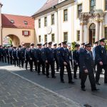 Im Anschluss des Gottesdienstes folgte ein weiterer Umzug, angeführt von der frisch geweihten Drehleiter, vom Markplatz zum Gerätehaus in der Neumarkter Straße.