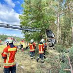 Die beiden Insassen konnten das schwer beschädigte und in zwei Teile zerrissene Fahrzeug aus eigener Kraft verlassen, wurden vom Rettungsdienst versorgt und in umliegende Kliniken gebracht.